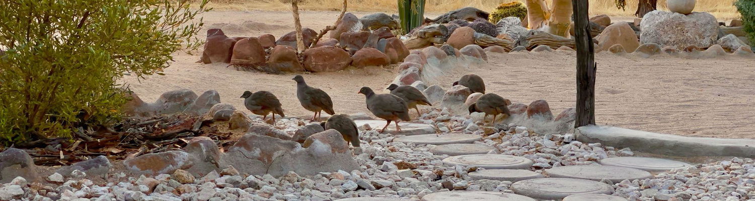 The Erongo Mountains offer exceptional birding opportunities, with a rich diversity of species found across their granite slopes, valleys, and seasonal watercourses. Seven Namibian endemics occur here, including the distinctive Hartlaub’s Francolin, the striking White‑tailed Shrike, and the lively Damara Rock‑runner. Raptors, cliff‑dwellers, and colourful songbirds all thrive in this varied landscape, while migratory and water birds add seasonal interest throughout the year.