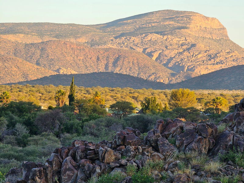 - The journey to the farm takes you through the unique and beautiful Namibian nature and is already an adventure on its own. The farm is situated in the basin on a wide open plain which is surrounded by the majestic extinct volcanic Erongo Mountains. For the hunters we offer an unforgettable experience hunting with a large variety of game on the farm. Hunters and their partners can also just enjoy a relaxing day at the farm.