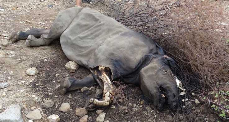Highly organised groups with inside information target specific rhinos. They typically kill the animal at dusk, remove the horn under cover of darkness, and leave the carcass behind.