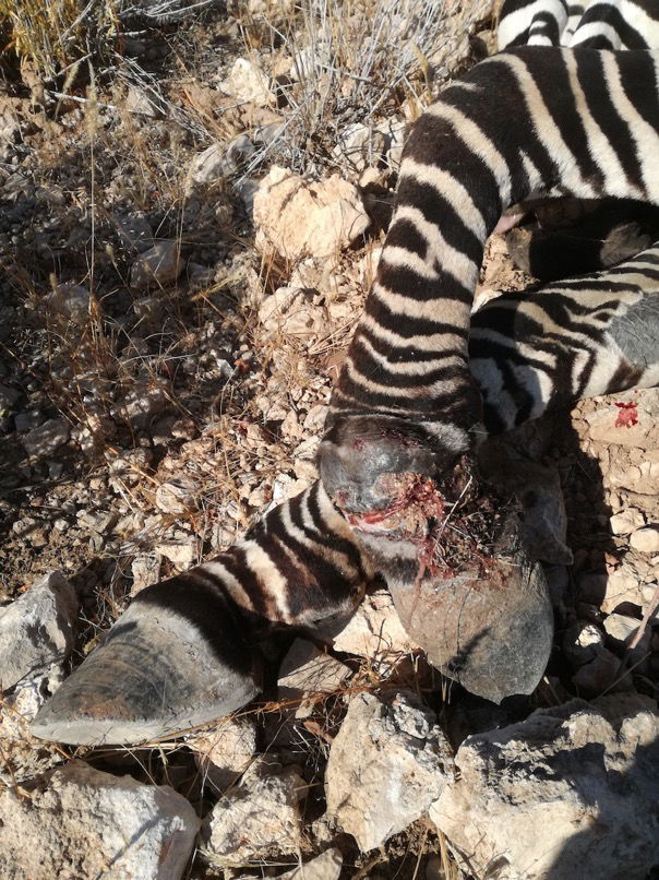 Poachers set steel‑wire snares along game trails, especially near waterholes. Animals such as Hartmann’s Mountain Zebra or Oryx step into the snare, which tightens around the leg, causing immense suffering and often death. Snaring is indiscriminate—multiple animals may be caught at once, and many are left to rot.
